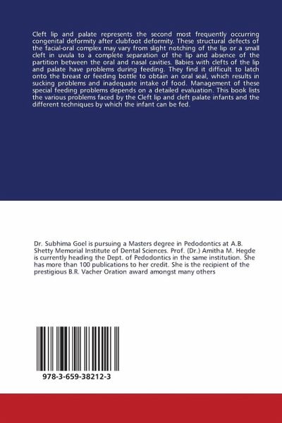 Cleft lip and palate represents the second most frequently occurring congenital deformity after clubfoot deformity. These structural defects of the facial-oral complex may vary from slight notching of the lip or a small cleft in uvula to a complete separation of the lip and absence of the partition between the oral and nasal cavities. Babies with clefts of the lip and palate have problems during feeding. They find it difficult to latch onto the breast or feeding bottle to obtain an oral seal, which results in sucking problems and inadequate intake of food. Management of these special feeding problems depends on a detailed evaluation. This book lists the various problems faced by the Cleft lip and cleft palate infants and the different techniques by which the infant can be fed.