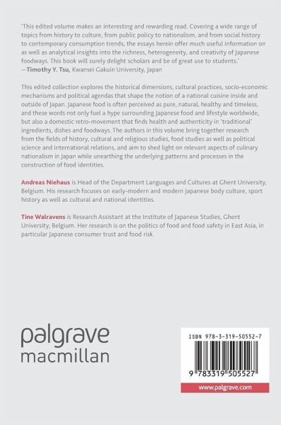 Introduction: Reconsidering Japanese food; Andreas Niehaus and Tine Walravens.- Part I: Inventing Japanese Food Identities.- 2."They should be called gluttons and be despised": Food, Body and Ideology in Kaibara Ekiken's Y j kun (1713); Andreas Niehaus.- 3. 'Sweets Reimagined': The Construction of Confectionary Identities, 1890-1930; Mitsuda TatsuyaFor Gluttons, Not Housewives: Japan's First Gourmet Magazine, Kuid raku; Eric Rath.- 4. Global Recognition and Domestic Containment: Culinary Soft Power in Japan; Stephanie Assmann.- Part II: Feeding the Nation: Japanese Food Identities in Times of Globalization.- 5. Deconstructing "Kokushu": The Promotion of Sake as Japan's National Alcohol Drink in Times of Crisis in the Sake Industry; Dick Stegewerns.- 6. The Drink of the Nation? Coffee in Japan's Culinary Culture; Helena Grinshpun.- 7. Forging Ahead with Bread: Nationalism, Networks and Narratives of Progress and Modernity in Japan Sheng Annie.- 8. Joining the Global Win