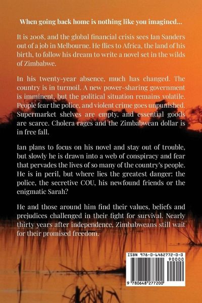 When going back home is nothing like you imagined... It is 2008, and the global financial crisis sees Ian Sanders out of a job in Melbourne. He flies to Africa, the land of his birth, to follow his dream to write a novel set in the wilds of Zimbabwe. In his twenty-year absence, much has changed. The country is in turmoil. A new power-sharing government is imminent, but the political situation remains volatile. People fear the police, and violent crime goes unpunished. Supermarket shelves are empty, and essential goods are scarce. Cholera rages and the Zimbabwean dollar is in free fall. Ian…mehr