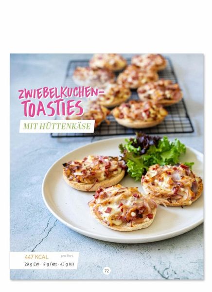Frühstück & Brotzeit:Zucchinibrot mit Quark & FetaQuark-Bagels mit SesamGlutenfreies EiweißbrotProtein-DönerbrotDänische ForellencremeLeichter LiptauerFrühstückswrap mit SchinkenSüßes:Chia-Quark-Bowl mit LeinsamenZimt-Porridge mit QuarkCremiger Protein-MilchreisSelbstgemachte ProteinriegelMüsli-Topping für QuarkNussig fruchtige MüsliriegelQuark-Bowl mit BeerenPuddingkuchen ohne BackenSalate & Bowls:Rote-Bete-Salat mit KichererbsenTürkischer BohnensalatOrientalischer Salat mit Perl-CouscousKichererbsensalat mit TahindressingPapayasalat mit LinsenGnocchisalat mit ThunfischGurkensalat mit Radieschen und HüttenkäseSpicy Kani-SalatProtein-Bowl mit KartoffelnCrispy Rice Lachs-BowlPower-Bowl mit SüßkartoffelHauptgerichte:Pekingsuppe mit HähnchenBrokkolisuppe mit CheddarLasagne für Zwei mit ZucchiniLachs-Tagliatelle mit HüttenkäsepestoZucchinipuffer mit GurkendipGefüllte Tomaten aus dem OfenScherenpasta mit GemüseTürkische Pide mit Spinat & FetaZwiebelkuchen-Toasties mit HüttenkäseGarnelen-Pfanne mit ReisnudelnHähnchen-Gulasch mit GemüseZucchini-Quiche mit FiloteigErdnuss-Lachs mit Zucchini-QuinoaShrimp-Tacos mit GuacamoleOfen-Kartoffel mit KäsefüllungJäger-Geschnetzeltes mit TagliatelleSchlemmer-Baguette mit ThunfischTofu-Gyrosteller mit KrautsalatZwiebel-Sahne-Hähnchen mit PommesFixes Nasi GorengFeta-Lachs-Rolle mit ZucchiniZucchini-Nester mit SpiegeleiSouvlaki-Spieße mit ReisBao Burger mit GarnelenQuark-Käse-Spätzle mit SalatKartoffelauflauf mit HüttenkäseFitness-Pizza