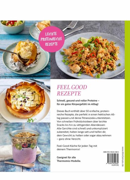FEEL GOOD REZEPTESchnell, gesund und voller Proteine - für ein gutes Körpergefühl im Alltag!Dieses Buch enthält über 50 einfache, proteinreiche Rezepte, die perfekt in einen hektischen Alltag passen und deine Fitnessziele unterstützen. Von schnellen Frühstücksideen über leichte Snacks bis hin zu sättigenden Abendessen: Alle Gerichte sind schnell und unkompliziert zubereitet, halten lange satt und helfen dir, dein Gewicht zu halten oder sogar abzunehmen - ganz ohne Verzicht.Feel-Good-Küche für jeden Tag mit deinem Thermomix! über 50 leichte proteinreiche Rezepte geeignet für alle Thermomix-Modelle Alle Rezepte mit Bild und Nährwertangaben…mehr