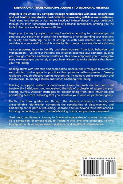 Embark on a Transformative Journey to Emotional Freedom Imagine a life where you navigate through relationships with ease, understand and set healthy boundaries, and cultivate unwavering self-love and resilience. "Feel, Heal, and Reveal: A Journey to Emotional Independence" is your guidebook through the often tumultuous landscape of personal connections, offering you the tools to become emotionally self-sufficient. Begin your journey by laying a strong foundation, learning to acknowledge and embrace your sensitivity. Discover the significance of understanding your reactions to toxicity and…mehr