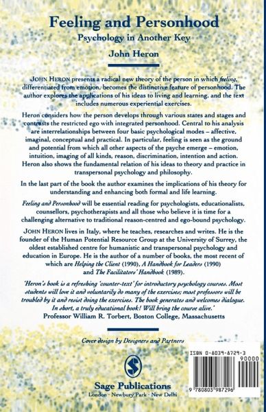 John Heron presents a radical new theory of the person in which feeling, differentiated from emotion, becomes the distinctive feature of personhood. The book explores the applications of Heron's ideas to living and learning and includes numerous experiential exercises. Central to Heron's analysis are interrelationships between four basic psychological modes - affective, imaginal, conceptual and practical. In particular, feeling is seen as the ground and potential from which all other aspects of the psyche emerge - emotion, intuition, imaging of all kinds, reason, discrimination, intention and action. The author also shows the fundamental relation of his ideas to theory and practice in transpersonal psychology and philosophy, and examines the implications of his theory for understanding and enhancing both formal and life learning.
