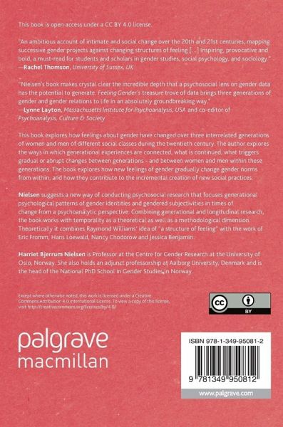Nielsen suggests a new way of conducting psychosocial research that focuses on generational psychological patterns of gender identities and gendered subjectivities in times of change from a psychoanalytic perspective. Combining generational and longitudinal research, the book works with temporality as a theoretical as well as a methodological dimension. Theoretically it combines Raymond Williams' idea of "a structure of feeling" with the work of Eric Fromm, Hans Loewald, Nancy Chodorow and Jessica Benjamin.
