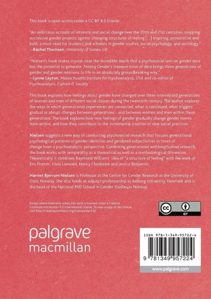 Nielsen suggests a new way of conducting psychosocial research that focuses on generational psychological patterns of gender identities and gendered subjectivities in times of change from a psychoanalytic perspective. Combining generational and longitudinal research, the book works with temporality as a theoretical as well as a methodological dimension. Theoretically it combines Raymond Williams' idea of "a structure of feeling" with the work of Eric Fromm, Hans Loewald, Nancy Chodorow and Jessica Benjamin.