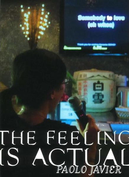 Poetry. Asian American Studies. "In Paolo Javier's THE FEELING IS ACTUAL, he writes: 'I've been / a grand-gesture guy in the past. & in all likelihood, / I will continue to be one in the future.' Javier hits the big notes in this collection: sex, romance, even aging and regret. The poetry often comes in the form of prose, as the discussion of a play or movie takes the place of life, the characters you and I; of humorous investigation, both abroad (the Philippines) and at home (Queens); and of visual poetry, in which comics collide with sly wit. All this with the multi-cultural vantage we expect from the poet, which comes to the fore in later sections, abetted by found images and typography. 'if im like a piece of bok choy / then you are probably / a piece of broccoli. /it's just the communication thing.' Listen to this book, watch it, lap it up"--Vincent Katz.