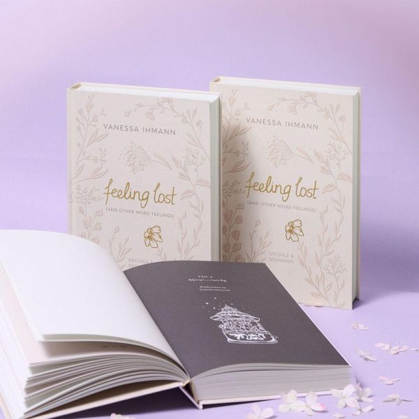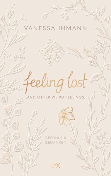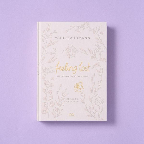 Das Cover von "feeling lost (and other weird feelings)" finde ich wahnsinnig schön. Ich liebe es, wie schlicht das Buch aussieht, gerade mit der beigen Farbe und trotzdem durch die Blumen und die kleinen Goldelemente etwas sehr hochwertiges hat.Gerade da die Pflanzen eine leichte Prägung haben, ist das einfach nochmal etwas besonderes. Besonders strahlt das Cover für mich auch die Ruhe aus, die die Seiten im inneren haben.