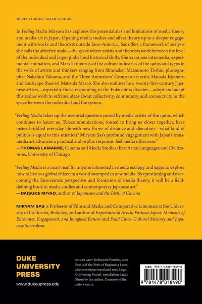 In Feeling Media Miryam Sas explores the potentialities and limitations of media theory and media art in Japan. Opening media studies and affect theory up to a deeper engagement with works and theorists outside Euro-America, Sas offers a framework of analysis she calls the affective scale-the space where artists and theorists work between the level of the individual and larger global and historical shifts. She examines intermedia, experimental animation, and Marxist theories of the culture industries of the 1960s and 1970s in the work of artists and thinkers ranging from filmmaker Matsumoto Toshio, photographer Nakahira Takuma, and the Three Animators' Group to art critic Hanada Kiyoteru and landscape theorist Matsuda Masao. She also outlines how twenty-first-century Japanese artists-especially those responding to the Fukushima disaster-adopt and adapt this earlier work to reframe ideas about collectivity, community, and connectivity in the space between the individual and the system.