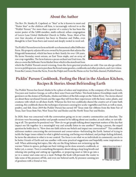 This cookbook addresses matters concerning the environment and conservation-befriending the Earth. Instead of trying to tackle the larger issues related to what is global warming, and being overwhelmed, and perhaps feeling defeated, he turns the attention to what is in our control. The focus is on what we as individuals in community can do to be better friends of Earth and one another with some practical suggestions and hopefully some inspiration as well. When addressing hot topics, like why are the King Salmon not swimming up the warmer Yukon to spawn, perhaps our best visiting can be done around a cookbook, or better yet, a canner. There is something therapeutic about taking a deep long breath and relaxing into peeling and cutting up vegetables, or preparing meat or fish to go into a jar in a canner and come out as a meal. Perhaps the book will persuade the reader to take some of the pressure off life, and even our beloved earth, by pressure canning jars of goodness with a friend or two.