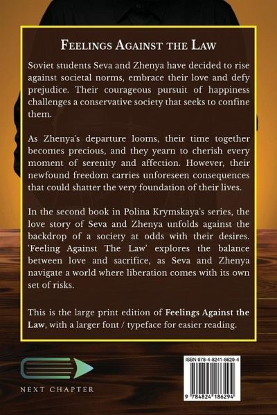 Soviet students Seva and Zhenya have decided to rise against societal norms, embrace their love and defy prejudice. Their courageous pursuit of happiness challenges a conservative society that seeks to confine them. As Zhenya's departure looms, their time together becomes precious, and they yearn to cherish every moment of serenity and affection. However, their newfound freedom carries unforeseen consequences that could shatter the very foundation of their lives. In the second book in Polina Krymskaya's series, the love story of Seva and Zhenya unfolds against the backdrop of a society at odds with their desires. 'Feeling Against The Law' explores the balance between love and sacrifice, as Seva and Zhenya navigate a world where liberation comes with its own set of risks. This is the large print edition of Feelings Against the Law, with a larger font / typeface for easier reading.