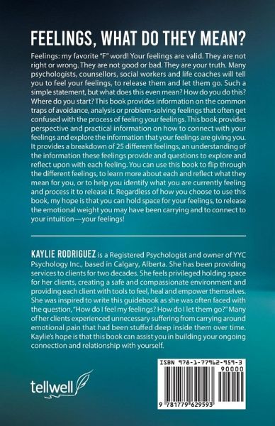 Feelings: my favorite "F" word! Your feelings are valid. They are not right or wrong. They are not good or bad. They are your truth. Many psychologists, counsellors, social workers and life coaches will tell you to feel your feelings, to release them and let them go. Such a simple statement, but what does this even mean? How do you do this? Where do you start? This book provides information on the common traps of avoidance, analysis, or problem-solving feelings that often get confused with the process of feeling your feelings. This book provides perspective and practical information on how to connect with your feelings and explore the information that your feelings are giving you. It provides a breakdown of 25 different feelings, an understanding of the information these feelings provide and questions to explore and reflect upon with each feeling. You can use this book to flip through the different feelings, to learn more about each and reflect what they mean for you, or to help you identify what you are currently feeling and process it to release it. Regardless of how you choose to use this book, my hope is that you can hold space for your feelings, to release the emotional weight you may have been carrying and to connect to your intuition-your feelings