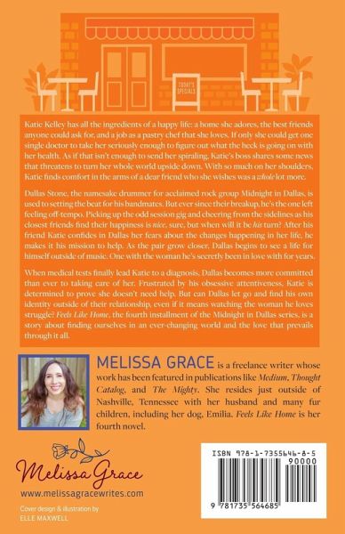 Katie Kelley has all the ingredients of a happy life: a home she adores, the best friends anyone could ask for, and a job as a pastry chef that she loves. If only she could get one single doctor to take her seriously enough to figure out what the heck is going on with her health. As if that isn't enough to send her spiraling, Katie's boss shares some news that threatens to turn her whole world upside down. With so much on her shoulders, Katie finds comfort in the arms of a dear friend who she wishes was a whole lot more. Dallas Stone, the namesake drummer for acclaimed rock group Midnight in Dallas, is used to setting the beat for his bandmates. But ever since their breakup, he's the one left feeling off-tempo. Picking up the odd session gig and cheering from the sidelines as his closest friends find their happiness is nice, sure, but when will it be his turn? After his friend Katie confides in Dallas her fears about the changes happening in her life, he makes it his mission to help. As the pair grow closer, Dallas begins to see a life for himself outside of music. One with the woman he's secretly been in love with for years. When medical tests finally lead Katie to a diagnosis, Dallas becomes more committed than ever to taking care of her. Frustrated by his obsessive attentiveness, Katie is determined to prove she doesn't need help. But can Dallas let go and find his own identity outside of their relationship, even if it means watching the woman he loves struggle? Feels Like Home, the fourth installment of the Midnight in Dallas series, is a story about finding ourselves in an ever-changing world and the love that prevails through it all.