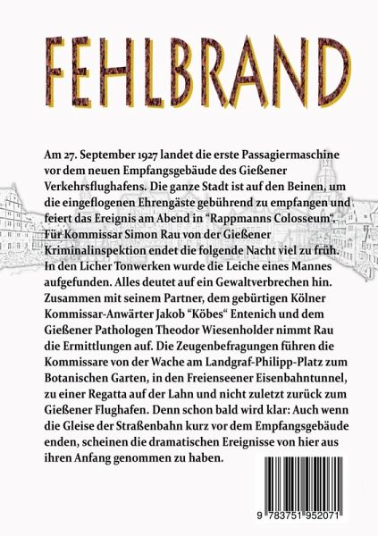 Am 27. September 1927 landet die erste Passagiermaschine vor dem neuen Empfangsgebäude des Gießener Verkehrsflughafens. Die ganze Stadt ist auf den Beinen, um die eingeflogenen Ehrengäste gebührend zu empfangen und feiert das Ereignis am Abend in "Rappmanns Colosseum". Für Kommissar Simon Rau von der Gießener Kriminalinspektion endet die folgende Nacht viel zu früh. In den Licher Tonwerken wurde die Leiche eines Mannes aufgefunden. Alles deutet auf ein Gewaltverbrechen hin. Zusammen mit seinem Partner, dem gebürtigen Kölner Kommissar-Anwärter Jakob "Köbes" Entenich und dem Gießener Pathologen Theodor Wiesenholder nimmt Rau die Ermittlungen auf. Die Zeugenbefragungen führen die Kommissare von der Wache am Landgraf-Philipp-Platz zum Botanischen Garten, in den Freienseener Eisenbahntunnel, zu einer Regatta auf der Lahn und nicht zuletzt zurück zum Gießener Flughafen. Denn schon bald wird klar: auch wenn die Gleise der Straßenbahn kurz vor dem Empfangsgebäude enden, scheinen die dramatischen Ereignisse von hier aus ihren Anfang genommen zu haben.
