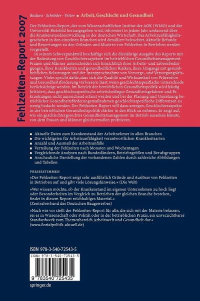 Gender-Aspekte im betrieblichen Gesundheitsmanagement. Der aktuelle Fehlzeiten-Report 2007 spricht sich für eine stärkere Integration geschlechtsspezifischer Unterschiede in die betriebliche Gesundheitspolitik aus. Gesundheitsmanagement für Frauen und Männer...