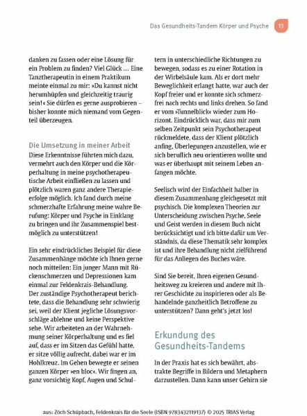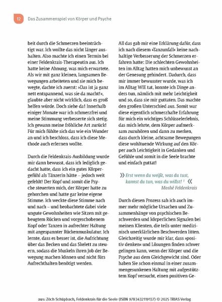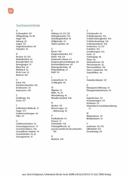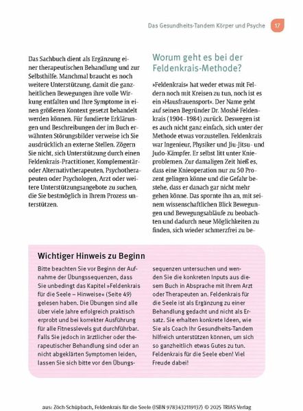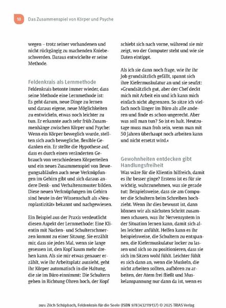 - Sie zeigt, wie Feldenkrais bei stressbedingten psychosomatischen Beschwerden, Depression und Burnout, aber auch Schlaf- Angststörungen eingesetzt werden kann.