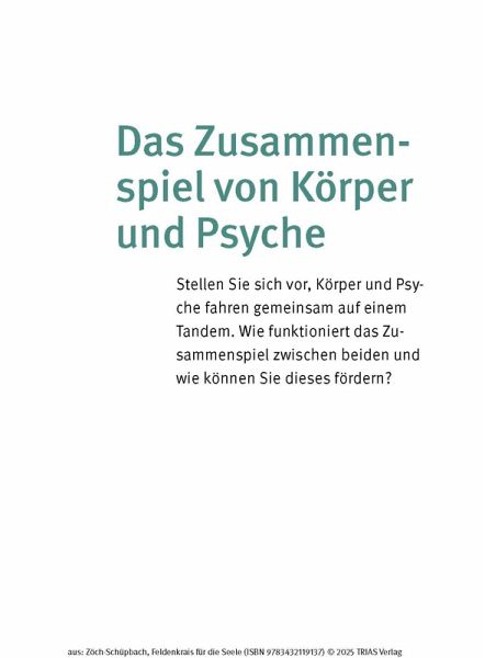 - Sie stellt Feldenkrais-Übungen vor, die Sie ins Gleichgewicht bringen und dadurch auch für psychische Ausgeglichenheit sorgen.