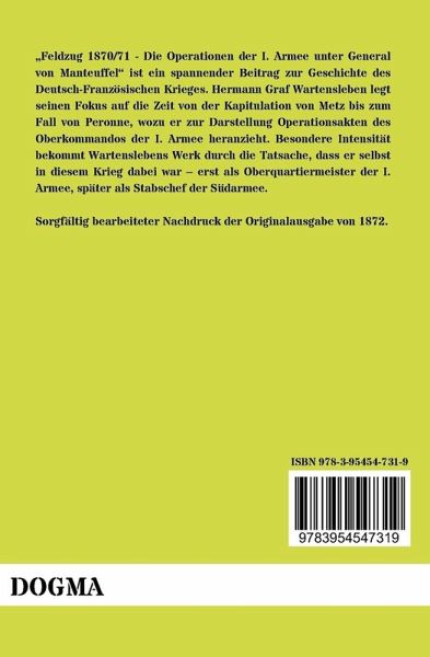 Feldzug 1870/71 - Die Operationen der I. Armee unter General von Manteuffel ist ein spannender Beitrag zur Geschichte des Deutsch-Französischen Krieges. Hermann Graf Wartensleben legt seinen Fokus auf die Zeit von der Kapitulation von Metz bis zum Fall von Peronne, wozu er zur Darstellung Operationsakten des Oberkommandos der I. Armee heranzieht. Besondere Intensität bekommt Wartenslebens Werk durch die Tatsache, dass er selbst in diesem Krieg dabei war erst als Oberquartiermeister der I. Armee, später als Stabschef der Südarmee.