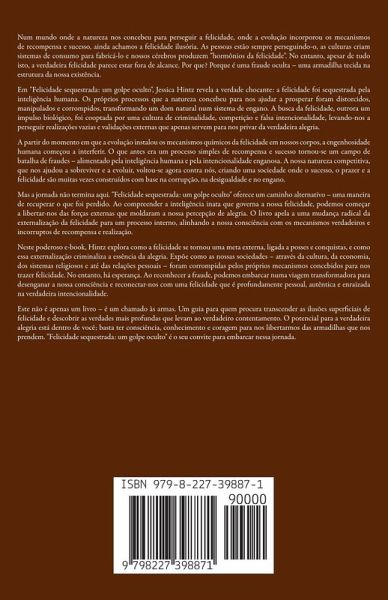 Num mundo onde a natureza nos concebeu para perseguir a felicidade, onde a evolução incorporou os mecanismos de recompensa e sucesso, ainda achamos a felicidade ilusória. As pessoas estão sempre perseguindo-o, as culturas criam sistemas de consumo para fabricá-lo e nossos cérebros produzem "hormônios da felicidade". No entanto, apesar de tudo isto, a verdadeira felicidade parece estar fora de alcance. Por que? Porque é uma fraude oculta - uma armadilha tecida na estrutura da nossa existência. Em "Felicidade sequestrada: um golpe oculto", Jessica Hintz revela a verdade chocante: a felicidade foi sequestrada pela inteligência humana. Os próprios processos que a natureza concebeu para nos ajudar a prosperar foram distorcidos, manipulados e corrompidos, transformando um dom natural num sistema de engano. A busca da felicidade, outrora um impulso biológico, foi cooptada por uma cultura de criminalidade, competição e falsa intencionalidade, levando-nos a perseguir realizações vazias e validações externas que apenas servem para nos privar da verdadeira alegria. A partir do momento em que a evolução instalou os mecanismos químicos da felicidade em nossos corpos, a engenhosidade humana começou a interferir. O que antes era um processo simples de recompensa e sucesso tornou-se um campo de batalha de fraudes - alimentado pela inteligência humana e pela intencionalidade enganosa. A nossa natureza competitiva, que nos ajudou a sobreviver e a evoluir, voltou-se agora contra nós, criando uma sociedade onde o sucesso, o prazer e a felicidade são muitas vezes construídos com base na corrupção, na desigualdade e no engano. Mas a jornada não termina aqui. "Felicidade sequestrada: um golpe oculto" oferece um caminho alternativo - uma maneira de recuperar o que foi perdido. Ao compreender a inteligência inata que governa a nossa felicidade, podemos começar a libertar-nos das forças externas que moldaram a nossa percepção de alegria. O livro apela a uma mudança radical da externalização da felicidade para um processo interno, alinhando a nossa consciência com os mecanismos verdadeiros e incorruptos de recompensa e realização. Neste poderoso e-book, Hintz explora como a felicidade se tornou uma meta externa, ligada a posses e conquistas, e como essa externalização criminaliza a essência da alegria. Expõe como as nossas sociedades - através da cultura, da economia, dos sistemas religiosos e até das relações pessoais - foram corrompidas pelos próprios mecanismos concebidos para nos trazer felicidade. No entanto, há esperança. Ao reconhecer a fraude, podemos embarcar numa viagem transformadora para desenganar a nossa consciência e reconectar-nos com uma felicidade que é profundamente pessoal, autêntica e enraizada na verdadeira intencionalidade. Este não é apenas um livro - é um chamado às armas. Um guia para quem procura transcender as ilusões superficiais de felicidade e descobrir as verdades mais profundas que levam ao verdadeiro contentamento. O potencial para a verdadeira alegria está dentro de você; basta ter consciência, conhecimento e coragem para nos libertarmos das armadilhas que nos prendem. "Felicidade sequestrada: um golpe oculto" é o seu convite para embarcar nessa jornada.