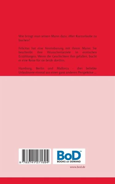 Wie bringt man seinen Mann dazu, öfter Kurzurlaube zu buchen?Felicitas hat eine Vereinbarung mit ihrem Mann: Sie beschreibt ihre Wunschreiseziele in erotischen Erzählungen. Wenn die Geschichten ihm gefallen, bucht er eine Reise für sie beide dorthin.Hamburg, Berlin und Mallorca - drei beliebte Urlaubsorte einmal aus einer ganz anderen Perspektive...