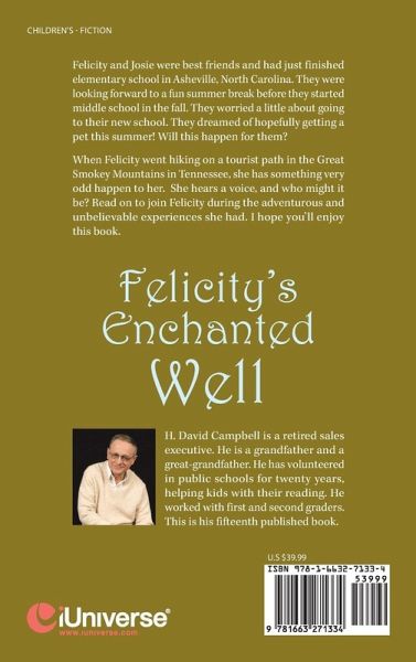 Felicity and Josie were best friends and had just finished elementary school in Asheville, North Carolina. They were looking forward to a fun summer break before they started middle school in the fall. They worried a little about going to their new school. They dreamed of hopefully getting a pet this summer! Will this happen for them? When Felicity went hiking on a tourist path in the Great Smokey Mountains in Tennessee, she has something very odd happen to her. She hears a voice, and who might it be? Read on to join Felicity during the adventurous and unbelievable experiences she had. I hope you'll enjoy this book.…mehr
