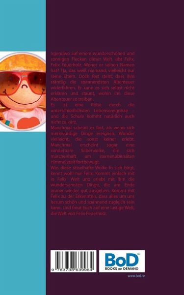 Irgendwo auf einem wunderschönen und sonnigen Flecken dieser Welt lebt Felix, Felix Feuerholz. Woher er seinen Namen hat? Tja, das weiß niemand, vielleicht nur seine Eltern. Doch fest steht, dass ihm ständig die spannendsten Abenteuer widerfahren. Er kann es sich selbst nicht erklären und staunt, wohin ihn diese Abenteuer so treiben. Es ist eine Reise durch die unterschiedlichsten Lebensereignisse - und die Schule kommt natürlich auch nicht zu kurz. Manchmal scheint es fast, als wenn sich merkwürdige Dinge ereignen, Wunder vielleicht, die sonst keiner erlebt. Manchmal erscheint sogar eine sonderbare Silberwolke, die sich märchenhaft am sternenübersäten Himmelszelt fortbewegt. Was diese rätselhafte Wolke in sich birgt, kennt wohl nur Felix. Kommt einfach mit in Felix´ Welt und erlebt mit ihm die wundersamsten Dinge, die am Ende immer wieder gut ausgehen. Kommt mit Felix zusammen zu der Erkenntnis, dass alles um uns herum schön und spannend zugleich sein kann. Und freut Euch auf eine lustige Welt, die Welt von Felix Feuerholz.