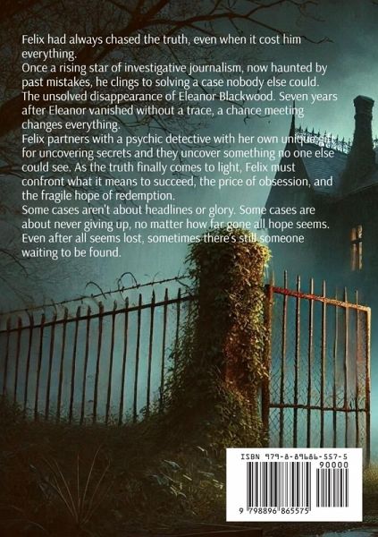 Felix had always chased the truth, even when it cost him everything. Once a rising star of investigative journalism, now haunted by past mistakes, he clings to solving a case nobody else could. The unsolved disappearance of Eleanor Blackwood. Seven years after Eleanor vanished without a trace, a chance meeting changes everything. Felix partners with a psychic detective with her own unique gift for uncovering secrets and they uncover something no one else could see. As the truth finally comes to light, Felix must confront what it means to succeed, the price of obsession, and the fragile hope of redemption. Some cases aren't about headlines or glory. Some cases are about never giving up, no matter how far gone all hope seems. Even after all seems lost, sometimes there's still someone waiting to be found.