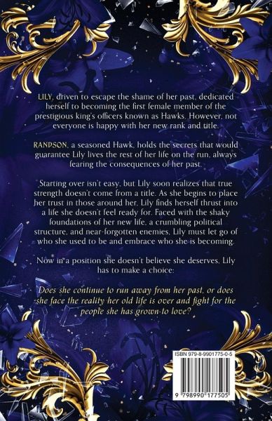 Lily, driven to escape the shame of her past, dedicated herself to becoming the first female member of the prestigious king's officers known as Hawks. However, not everyone is happy with her new rank and title. Randson, a seasoned Hawk, holds the secrets that would guarantee Lily lives the rest of her life on the run, always fearing the consequences of her past. Starting over isn't easy, but Lily soon realizes that true strength doesn't come from a title. As she begins to place her trust in those around her, Lily finds herself thrust into a life she doesn't feel ready for. Faced with the shaky foundations of her new life, a crumbling political structure, and near-forgotten enemies, Lily must let go of who she used to be and embrace who she is becoming. Now in a position she doesn't believe she deserves, Lily has to make a choice: Does she continue to run away from her past, or does she face the reality her old life is over and fight for the people she has grown to love?