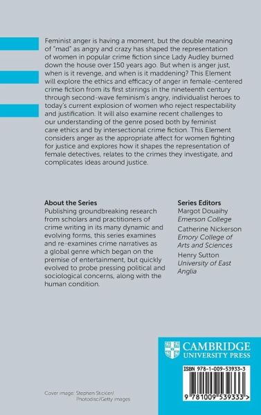 Feminist anger is having a moment, but the double meaning of 'mad' as angry and crazy has shaped the representation of women in popular crime fiction since Lady Audley burned down the house over 150 years ago. But when is anger just, when is it revenge, and when is it maddening? This Element will explore the ethics and efficacy of anger in female-centered crime fiction from its first stirrings in the 19th century through second wave feminism's angry, individualist heroes until today's current explosion of women who reject respectability and justification. It will also examine recent challenges to our understanding of the genre posed both by feminist care ethics and by intersectional crime fiction. This Element considers anger as the appropriate affect for women fighting for justice and explores how it shapes the representation of female detectives, relates to the crimes they investigate, and complicates ideas around justice.