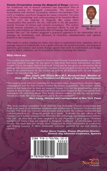 Female Circumcision among the Abagusii of Kenya captures the traditional role of women initiation and associated rites of passage among the Abagusii community. The journey to womanhood was deemed incomplete without circumcision ("the cut"), a tradition practiced Abagusii for many centuries. Yet even in the face of knowledge and understanding of the harmful effects of "the cut", the majority of Abagusii, like many other communities that practice the rite, still sticks to the old practice, mainly because of taboos and societal acceptance. The author details women initiation in Gusii, discusses efforts to end the practice and outlines an Alternative Rite of Passage that doesn't involve "the cut". He further suggests a practical approach to the alternative rite of passage via workshops, and advocacy of churches, administration and opinion leaders in the community. This work is useful reading for those that wish to understand how initiation rites of passage impacted individuals. It is a good reference for social scientists, development partners, government and social change agents that seek to understand and design ways in which initiation can be actualized without harming the initiates. What others Say "The author was born and raised in Gusii where Female Genital Mutilation is rampant and has resisted change. He has given in this book first-hand information on what Female Cut is, its origin, how it is done in Gusii and he has given an alternative rite of passage into womanhood without the cut which is an integral section in the book. The book is an achievement by the author as well as all Kenyans who do not support female circumcision like me." - Hon. Linah Jebii Kilimo (Mrs.) M.P, Marakwet East, Minister of State Office of the Vice President and Ministry of Regional Development. "The book is a good reference material for Social Scientists, Researchers, Human Rights campaigners and for Anti Female Genital Mutilation supporters. The author clearly states in his book that he does not support Female Cut but his grandmother sees no reason to stop it since she was and most women in her community have undergone the enduring ritual. This family division makes me ask the last question: 'would you really like yours daughters not to be circumcised?' " - Marc Lacey, Director and Correspondent of New York Times. "The book reading committee of the Seventh Day Adventist Church recommended this book to be used in all meetings, seminars and workshops in Nyamira Conference and beyond. The book has relevant and accurate notes about the current traditional and cultural practices of Abagusii people as a whole. It details the side effects of the Female Cut; it further proposes the Alterative Rite of Passage into womanhood without "the cut", an idea that we have employed in our churches. I grew up in Christian background hence I was not exposed to Abagusii traditions of circumcision and its rituals. The book lays out clearly what happened in such ceremonies in a coherent and flowing manner. It offers invaluable reference material for me and others in church." - Pastor Dorca Ongaga, Women Ministries Director, Seventh Day Adventist Conference, Nyamira.