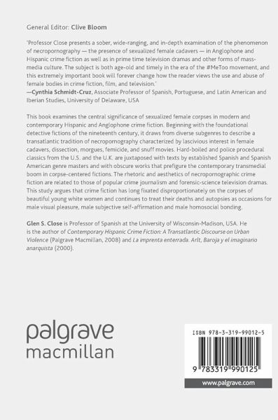 This book examines the central significance of sexualized female corpses in modern and contemporary Hispanic and Anglophone crime fiction. Beginning with the foundational detective fictions of the nineteenth century, it draws from diverse subgenres to describe a transatlantic tradition of necropornography characterized by lascivious interest in female cadavers, dissection, morgues, femicide, and snuff movies. Hard-boiled and police procedural classics from the U.S. and the U.K. are juxtaposed with texts by established Spanish and Spanish American genre masters and with obscure works that prefigure the contemporary transmedial boom in corpse-centered fictions. The rhetoric and aesthetics of necropornographic crime fiction are related to those of popular crime journalism and forensic-science television dramas. This study argues that crime fiction has long fixated disproportionately on the corpses of beautiful young white women and continues to treat their deaths and autopsies as occasions for male visual pleasure, male subjective self-affirmation and male homosocial bonding.