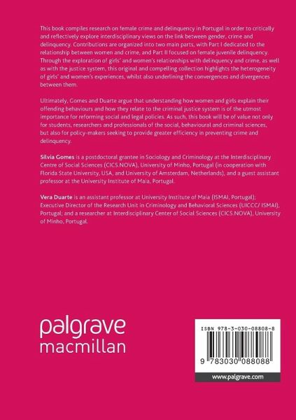 Chapter 1. An Introduction to Female Crime and Delinquency; Sílvia Gomes and Vera Duarte.- Part I - Crime and Women.- Chapter 2. The Criminal Act at the Core of the Nexus Security-insecurity; Catarina Frois.- Chapter 3. Stalking by Women; Helena Grangeia and Margarida Santos.- Chapter 4. Onstage and off; Manuela Ivone Cunha.- Chapter 5. How do Foreign Women end up in Prison?; Sílvia Gomes.- Chapter 6. 'To Kill or to be Killed'; Mafalda Ferreira, Sofia Neves and Sílvia Gomes.- Part II - Female Juvenile Delinquency.- Chapter 7. Heterosexual Dating Violence and Social Gender Relations; Sofia Neves and Joana Torres.- Chapter 8. Constructing Meaning about the Delinquency of Young Girls in Public Housing Neighbourhoods; Maria João Leote de Carvalho.- Chapter 9. Gender and Crime in the Life Pathways of Young Women Offenders; Raquel Matos.- Chapter 10. Girls and Transgressive Paths; Vera Duarte and Ana Margarida Guerreiro.