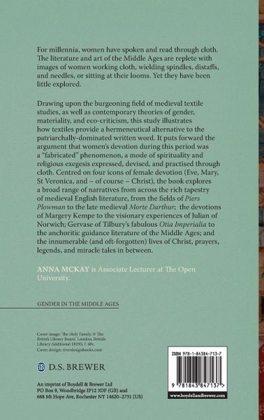 Uncovers the female voices, lived experiences, and spiritual insights encoded by the imagery of textiles in the Middle Ages. For millennia, women have spoken and read through cloth. The literature and art of the Middle Ages are replete with images of women working cloth, wielding spindles, distaffs, and needles, or sitting at their looms. Yet they have been little explored. Drawing upon the burgeoning field of medieval textile studies, as well as contemporary theories of gender, materiality, and eco-criticism, this study illustrates how textiles provide a hermeneutical alternative to the patriarchally-dominated written word. It puts forward the argument that women's devotion during this period was a "fabricated" phenomenon, a mode of spirituality and religious exegesis expressed, devised, and practised through cloth. Centred on four icons of female devotion (Eve, Mary, St Veronica, and - of course - Christ), the book explores a broad range of narratives from across the rich tapestry of medieval English literature, from the fields of Piers Plowman to the late medieval Morte D'arthur; the devotions of Margery Kempe to the visionary experiences of Julian of Norwich; Gervase of Tilbury's fabulous Otia Imperialia to the anchoritic guidance literature of the Middle Ages; and the innumerable (and oft-forgotten) lives of Christ, prayers, legends, and miracle tales in between.