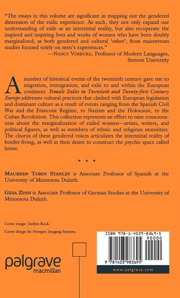 'The essays in this volume are significant in mapping out the gendered dimension of the exilic experience. As such, they not only expand our understanding of exile as an interstitial reality, but also recuperate the inspired and inspiring lives and works of women who have been doubly marginalized, as both gendered and cultural 'other', from mainstream studies focused solely on men's experiences.' - Nancy Vosburg, Professor of Modern Languages, Stetson University