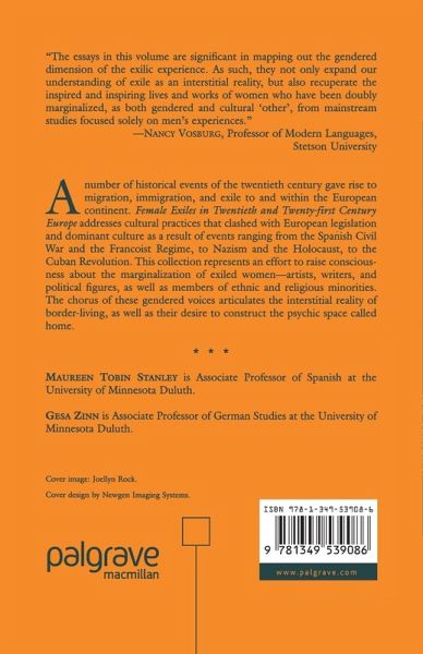 'The essays in this volume are significant in mapping out the gendered dimension of the exilic experience. As such, they not only expand our understanding of exile as an interstitial reality, but also recuperate the inspired and inspiring lives and works of women who have been doubly marginalized, as both gendered and cultural 'other', from mainstream studies focused solely on men's experiences.' - Nancy Vosburg, Professor of Modern Languages, Stetson University