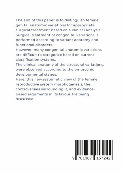 The aim of this paper is to distinguish female genital anatomic variations for appropriate surgical treatment based on a clinical analysis. Surgical treatment of congenital variations is performed according to variant anatomy and functional disorders. However, many congenital anatomic variations are difficult to categorize based on current classification systems. Genital structural anomalies are defined as deviations from normal anatomy resulting of embryological maldevelopment. The clinical anatomy of the structural variations, were observed according to the embryonic developmental stages. A systematic comparison of reproductive organ anatomic variations (malformations) with contemporary embryological investigations and literature reviews revealed that many controversies exist, stimulating the formulation of a new concept of embryonic morphogenesis. Here, this new systematic view of the reproductive system morphogenesis, the controversies surrounding it, and evidence-based arguments in its favour are being discussed.