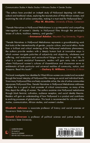 Female Narratives in Nollywood Melodramas investigates the role of women in nine Nollywood melodramas with attention to the changing landscape of filmmaking and film viewing. By incorporating Black feminist, audience reception, social identity, and cultivation theories, Johnson and Culverson provide insight into how identities for West African women are created and recreated through the broad interplay of Nollywood film viewing on social and individual levels. This book addresses how Nollywood is a product and contributor to evolving processes of globalization.