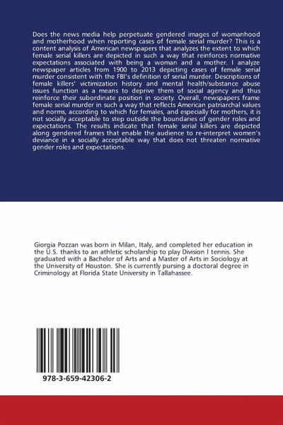 Does the news media help perpetuate gendered images of womanhood and motherhood when reporting cases of female serial murder? This is a content analysis of American newspapers that analyzes the extent to which female serial killers are depicted in such a way that reinforces normative expectations associated with being a woman and a mother. I analyze newspaper articles from 1900 to 2013 depicting cases of female serial murder consistent with the FBI's definition of serial murder. Descriptions of female killers' victimization history and mental health/substance abuse issues function as a means to deprive them of social agency and thus reinforce their subordinate position in society. Overall, newspapers frame female serial murder in such a way that reflects American patriarchal values and norms, according to which for females, and especially for mothers, it is not socially acceptable to step outside the boundaries of gender roles and expectations. The results indicate that female serial killers are depicted along gendered frames that enable the audience to re-interpret women's deviance in a socially acceptable way that does not threaten normative gender roles and expectations.