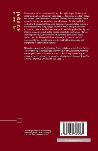 'Chiara Beccalossi makes several important and original contributions to the histories of sexuality and psychiatry. Above all, the author provides the first sustained analysis of medical approaches to female same-sex desires in Italy during this period . . . Her archival research brings to light hitherto unexamined documents and discursive trends . . . It will undoubtedly become a valuable point of reference for researchers, postgraduate and undergraduate students in a range of disciplines.' - Charlotte Ross, History of Psychiatry