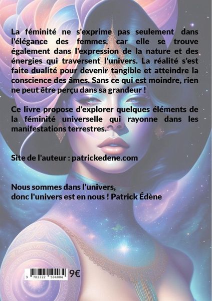 La féminité ne s'exprime pas seulement dans l'élégance des femmes, car elle se trouve également dans l'expression de la nature et des énergies qui traversent l'univers. La réalité s'est faite dualité pour devenir tangible et atteindre la conscience des âmes. Sans ce qui est moindre, rren ne peut être perçu dans sa grandeur !Ce livre propose d'explorer quelques éléments de la féminité universelle qui rayonne dans les manifestations terrestres.