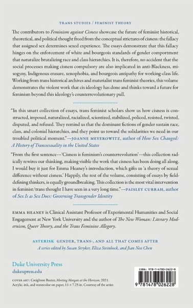 The contributors to Feminism against Cisness showcase the future of feminist historical, theoretical, and political thought freed from the conceptual strictures of cisness: the fallacy that assigned sex determines sexed experience. The essays demonstrate that this fallacy hinges on the enforcement of white and bourgeois standards of gender comportment that naturalize brutalizing race and class hierarchies. It is, therefore, no accident that the social processes making cisness compulsory are also implicated in anti-Blackness, misogyny, Indigenous erasure, xenophobia, and bourgeois antipathy for working-class life. Working from trans historical archives and materialist trans feminist theories, this volume demonstrates the violent work that cis ideology has done and thinks toward a future for feminism beyond this ideology's counterrevolutionary pull. Contributors. Cameron Awkward-Rich, Marquis Bey, Kay Gabriel, Jules Gill-Peterson, Emma Heaney, Margaux L. Kristjansson, Greta LaFleur, Grace Lavery, Durba Mitra, Beans Velocci, Joanna Wuest