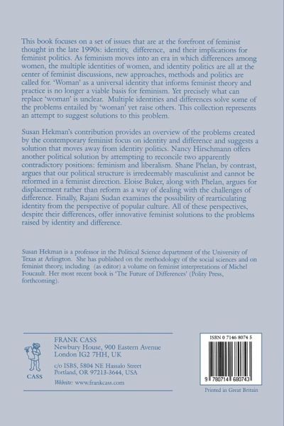 This study focuses on a set of issues at the forefront of feminist thought in the late 1990s: identity, difference and their implications for feminist politics. As feminism moves into an era in which differences among women, the multiple identities of woman and identity politics are all at the centre of feminist discussions, new approaches, methods and politics are called for.