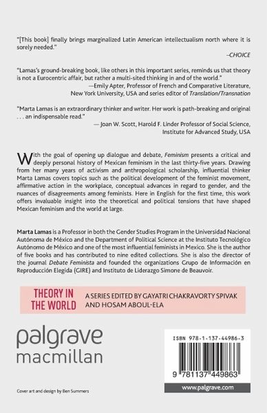 "Marta Lamasis a refreshing, incisive voice and the history she charts is a welcome and informative one.The English translation of Feminism poses questions and problems that remain points of contention in feminist work across institutions and social spaces. This will be a timely and useful resource for students and scholars interested in learning more about theoretical and political tensions that shaped late twentieth-century Mexican feminism." - Rosemary Hennessy, Director, Center for the Study of Women, Gender and Sexuality and Professor, Department of English, Rice University