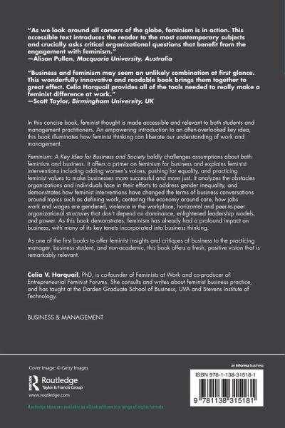 'Presenting leaders with a compelling definition of feminism that is a call to action, this book highlights the relevance of feminism to business. In highlighting the oppression, privilege, and domination that characterize business culture, Celia V. Harquail challenges the reader to reflect, question, critique, and even disagree with her. The book offers an invitation that business leaders can no longer afford to ignore - it is time to change the rules of the game. Feminism is a catalyst for the ways that business can be a force for positive social and economic transformation.' -- Stacy Blake-Beard, Professor of Management, Simmons University, USA and Indian School of Business, India.