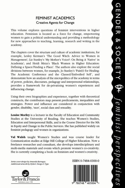 This text brings together leading feminists who explore questions of feminist interventions in organisations of knowledge production, covering both the structure and culture of academic institutions and the social divisions between women. Feminism is located as a force for change, empowering women to gain a political understanding and providing a methodology for new approaches to teaching, learning, research and writing in the academy. Contributions demonstrate how an analysis of the micropolitics of the academy in terms of power, policies, discourses, pedagogy and interpersonal relationships provides a framework for de- privatising women's experience and influencing change. Using theoretical constructs and their own biographies and experience, the contributors present predicaments, inequalities and strategies. Power and influence are considered in conjunction with gender, 'race', social class and sexuality.