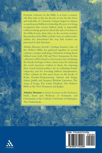 This volume is part of a series which provides a fundamental resource for feminist biblical scholarship, containing a comprehensive selection of essays, both reprinted and specially written for the series, by leading feminist scholars. In this volume, Brenner-Idan collects some of the foremost feminist scholars in biblical studies, including Susanne Scholz, Carol Delaney and Lyn M. Bechtel, to offer their words on the role of woman in the first book of the Old Testament, how she is portrayed, and the implication of attitudes towards her.
