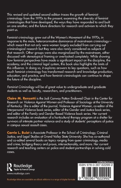 In this 2nd edition the authors trace the growth of feminist criminology from the 1970s to the present, examining the diversity of feminist criminologies that have developed, the ways they have responded to and built on one another, and the future directions for research and activism to which they point us.