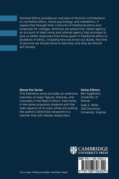 Feminist Ethics provides an overview of feminist contributions to normative ethics, moral psychology, and metaethics. It argues that through their criticisms of traditional ethics and proposals for changes, feminists are advancing 'robust agency.'