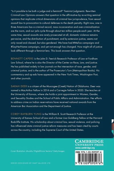 Introduction and Overview Part I. Gendered Justice: 1. McQuirter v. State Commentary: Grayce Zelphine Judgment: Cortney Lollar 2. People v. Berry Commentary: Carolyn B. Ramsey Judgment: Susan D. Rozelle 3. Coker v. Georgia Commentary: Catherine M. Grosso and Barbara O'Brien 4. Oliphant v. Suquamish Indian Tribe Commentary: Adam Crepelle Judgment: Melissa L. Tatum 5. State v. Rusk Commentary: JoAnne Sweeny: Judgement Michelle J. Anderson 6. People v. Wu Commentary: John Felipe Acevedo Judgment: Leti Volpp 7. Winnebago Tribe of Nebraska v. Bigfire Commentary: Anne E. Tweedy Judgment: Sarah Deer 8. Commonwealth v. Blache Commentary: Marie-Amélie George Judgement: Ben A. McJunkin Part II. Gender on Trial 9. State v. Williams Commentary: Kim Hai Pearson Judgment: Addie C. Rolnick 10. State v. Walden Commentary: Lisa R. Avalos Judgement: Sarah L. Swan 11. State v. Norman Commentary: Joan H. Krause Judgment: Martha R. Mahoney 12. Whitner v. State Commentary: Ruqaiijah Yearby Judgment: Aziza Ahmed 13. United States v. Nwoye Commentary: Sherri Lee Keene Judgment: Mary D. Fan 14. Erotic Services Provider Legal Education and Research Project v. Gascon Commentary: Aya Gruber and Kate Mogulescu Judgment: I. India Thusi.