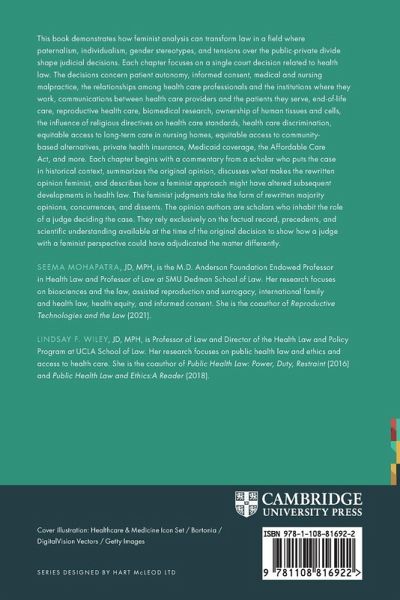 This volume provides an alternate history of health law by rewriting key judicial opinions from a feminist perspective. Leading scholars demonstrate how feminist analysis can transform law in a field where paternalism, stereotypes, and the public-private divide shape decisions about patient autonomy, coordination of care and health care financing.