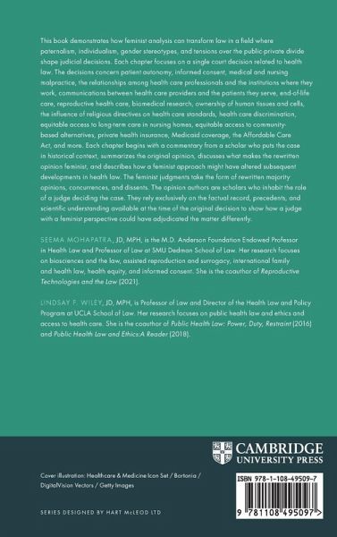 This volume provides an alternate history of health law by rewriting key judicial opinions from a feminist perspective. Leading scholars demonstrate how feminist analysis can transform law in a field where paternalism, stereotypes, and the public-private divide shape decisions about patient autonomy, coordination of care and health care financing.